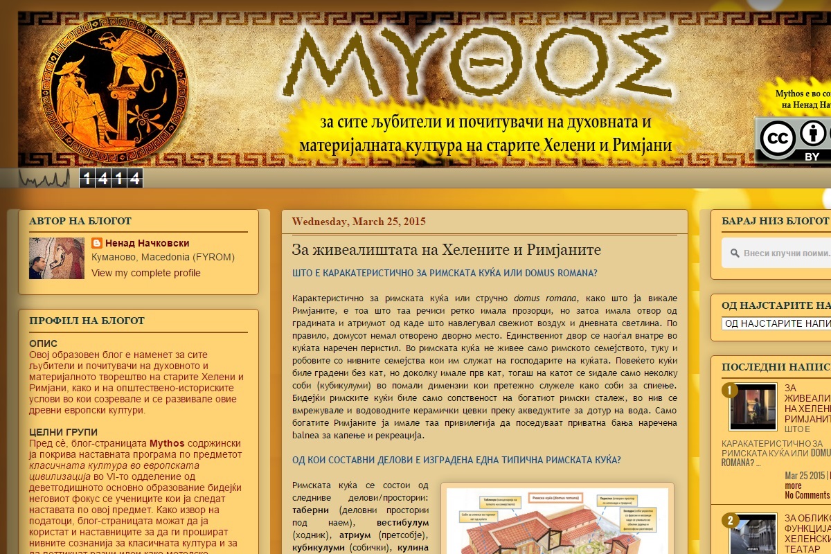 Образовниот ресурс Mythos е блог-платформа наменета за сите љубители и почитувачи на духовното и материјалното творештво на старите Хелени и Римјани, како и на општествено-историските услови во кои созревале и се развивале овие древни европски култури.